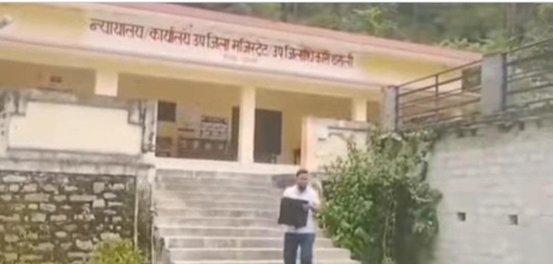 थराली ब्लाक के राड़ीबगड़ में तहसील में SDM के कार्यालय के पीछे की पहाड़ी में भूस्खलन शुरू होने की सूचना से अफरातफरी, लगातार पत्थर गिर रहे है कं